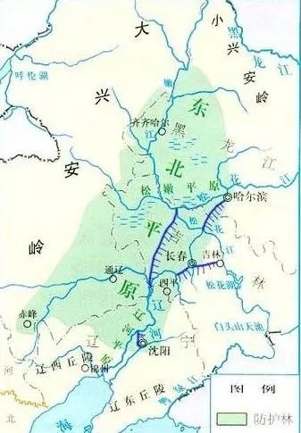 图4,东北地区植被示意图。植被主要都是四大山脉(燕山山脉、大兴安岭、小兴安岭、长白山山脉)