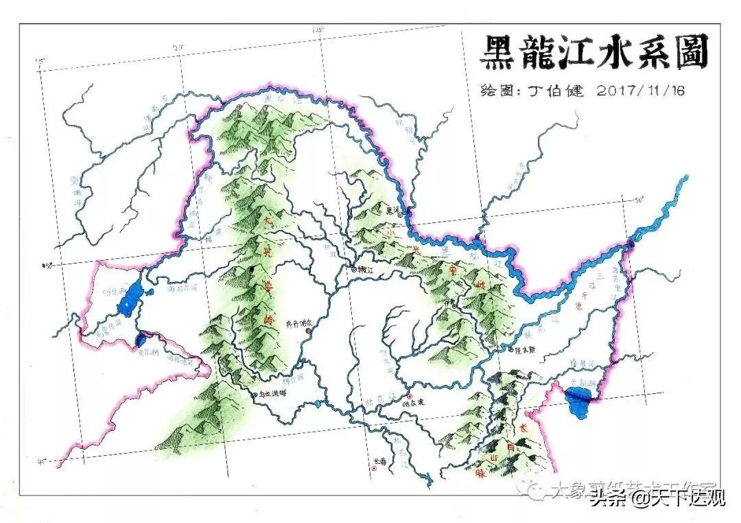 图14,黑龙江、乌苏里江、松花江、嫩江、辽河以及鸭绿江分布图