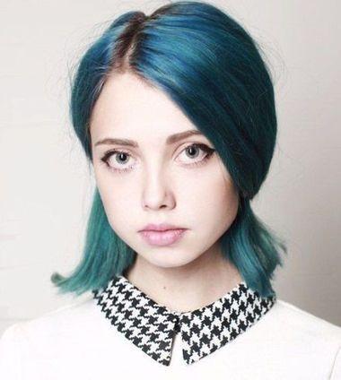 2017年冬天的时候,梳着及肩短直发的女生们,如果不想过多的改变短发造型的话,可以将短发用蓝绿色染哟,不明显的渐变色短直发发型扎成蓬松优雅的公主头发型,国字脸女生看起来很是温婉淑女。