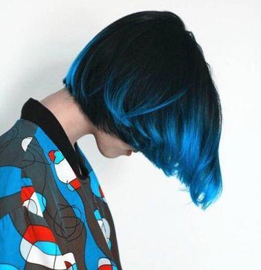女生将短发剪裁整齐之后,发尾烫成弧度很小的内扣卷发,灵动时尚的短发乌黑纯粹,这时女生将短发下面的发丝染成深海蓝色,与原本的黑色融为一头,一款深邃个性的冬季女生短发染发发型就出来了。