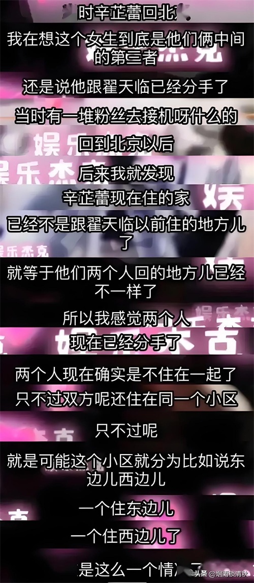 当时的辛芷蕾,心中充满了对未来的期待,幻想着能和翟天临一起白头偕老,她相信,这段感情是坚不可摧的,正当她沉浸在这种甜蜜中时,生活却悄悄地留下了一些不易察觉的端倪,小小的争执、偶尔的冷淡,都在无形中为这段关系埋下了隐患
