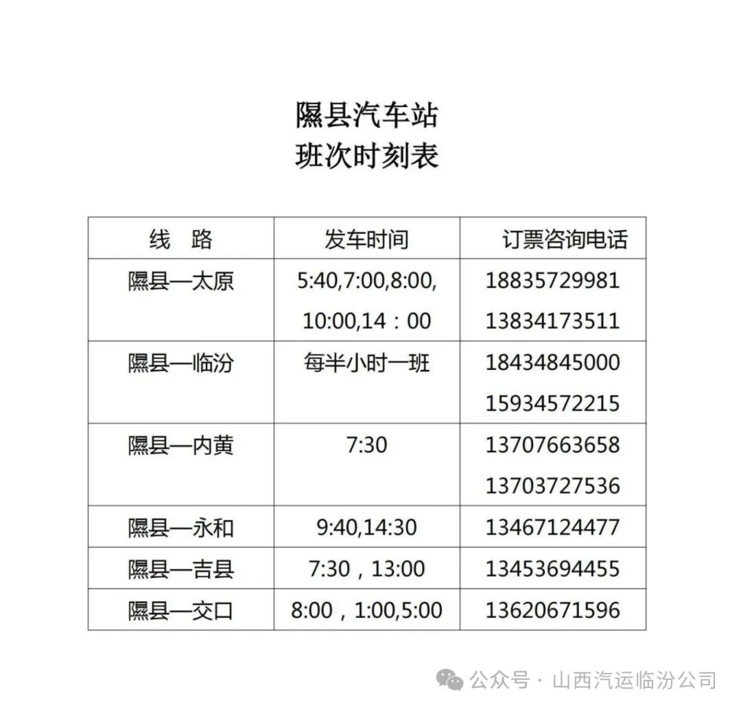 详细了解更多车辆运营信息,请您关注临汾城西客运站“临汾智行”微信公众号或拨打客服热线:0357-7186111、0357-7186650。我们将竭诚为您服务!
