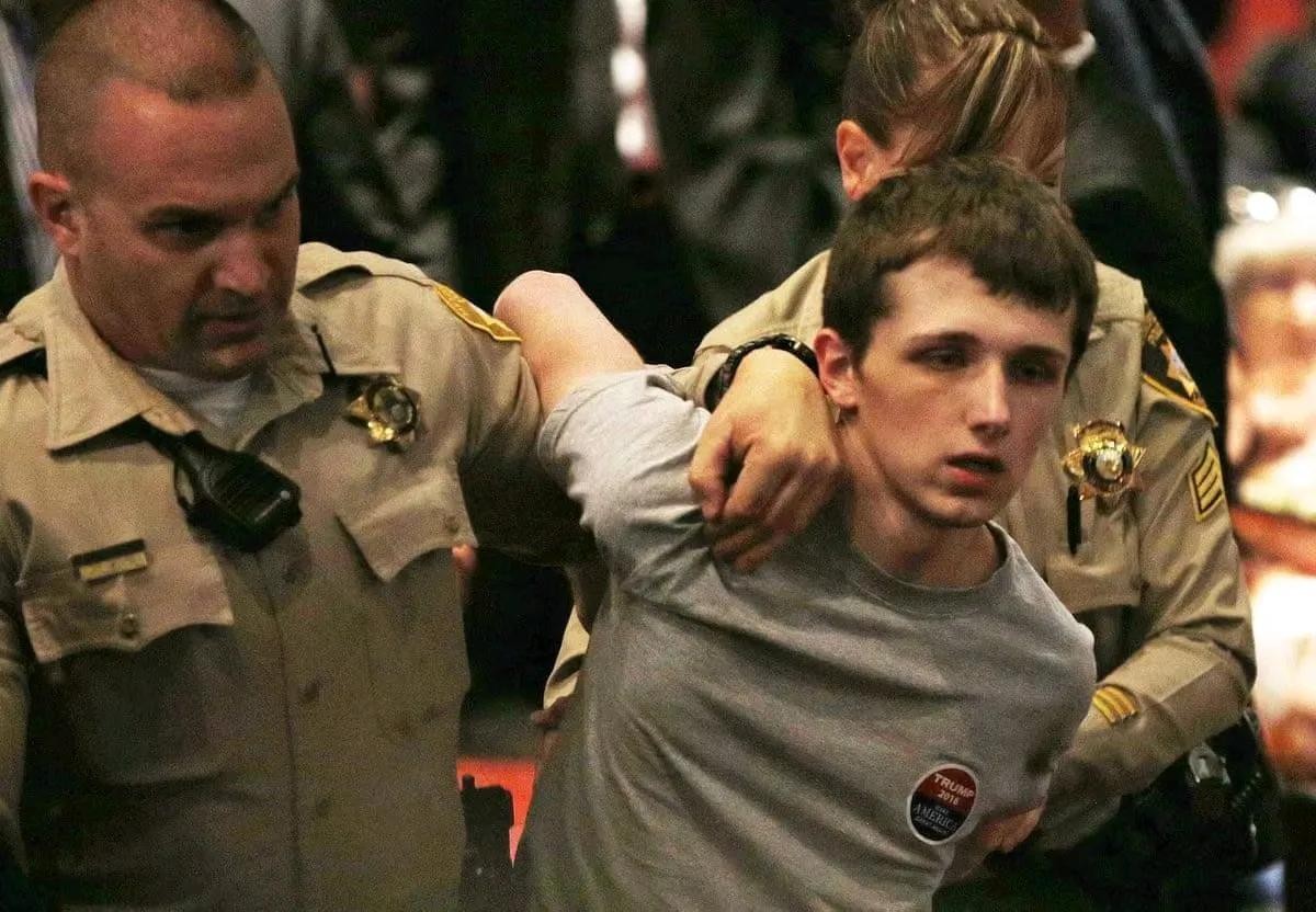 ①2016年,特朗普当时还只是总统候选人,在他参加一次竞选宣讲的时候,便遭到了总统生涯当中的“第一刺”。