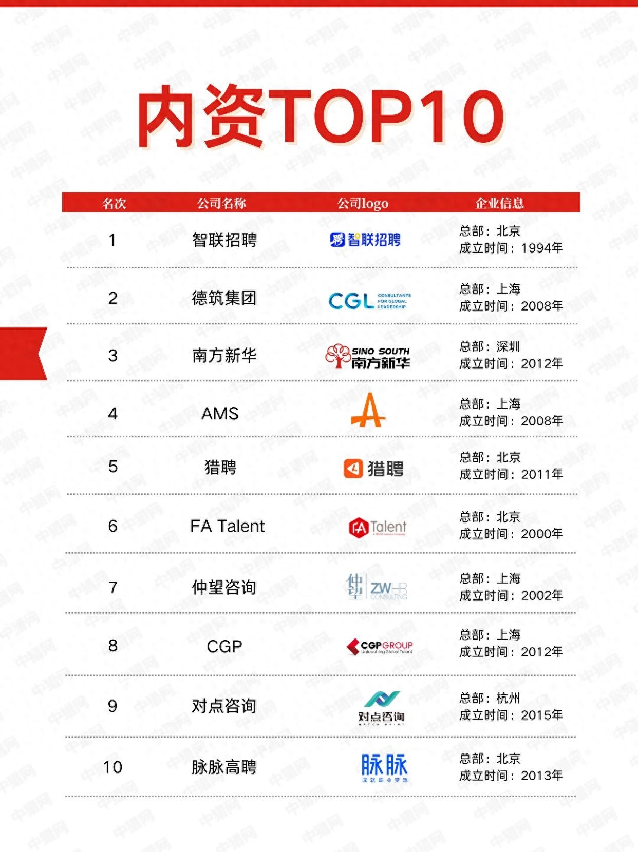 下面的猎头公司排名来自不同的渠道由中猎小编整理得出。(数据来源:知乎、百度人数据、谷露等排名网)