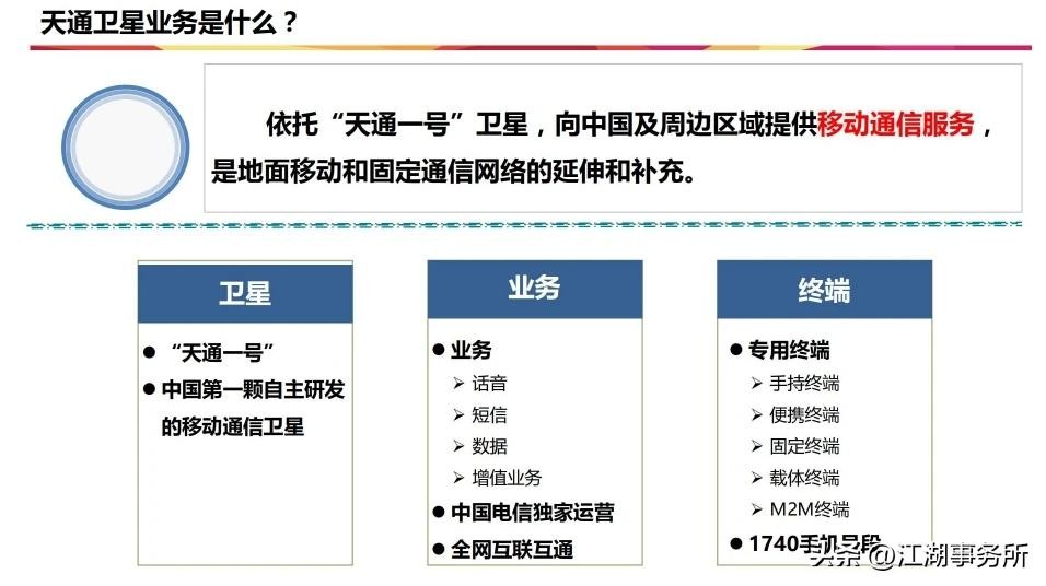 天通一号卫星拥有109个国土点波束,实现了我国领土、领海、中东、非洲,以及太平洋、印度洋大部分海域区域覆盖。可提供语音、短信、物联网服务、加密通讯等服务,系统的用户容量可达250万户以上,基本满足目前的用户用量。未来不排除会进一步扩容。