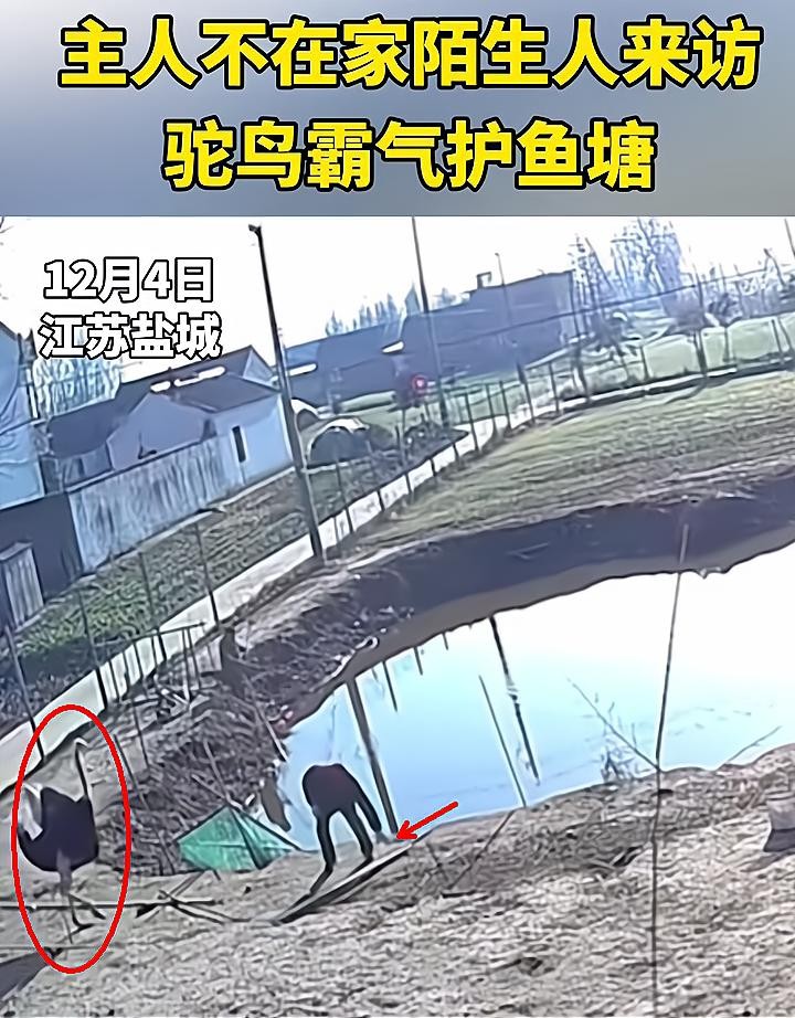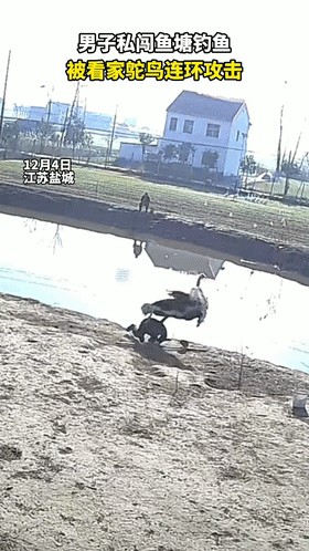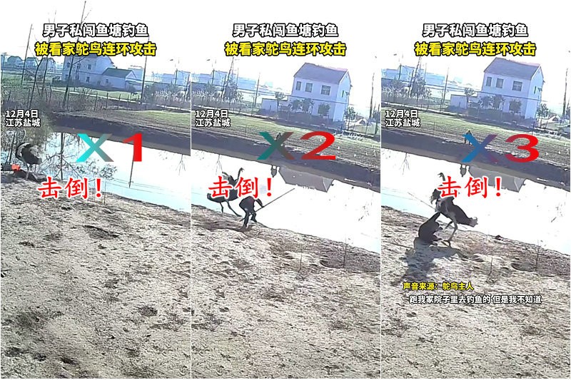 年度最倒霉钓鱼人?盐城男子私闯鱼塘偷钓,惨被看家鸵鸟多次打倒