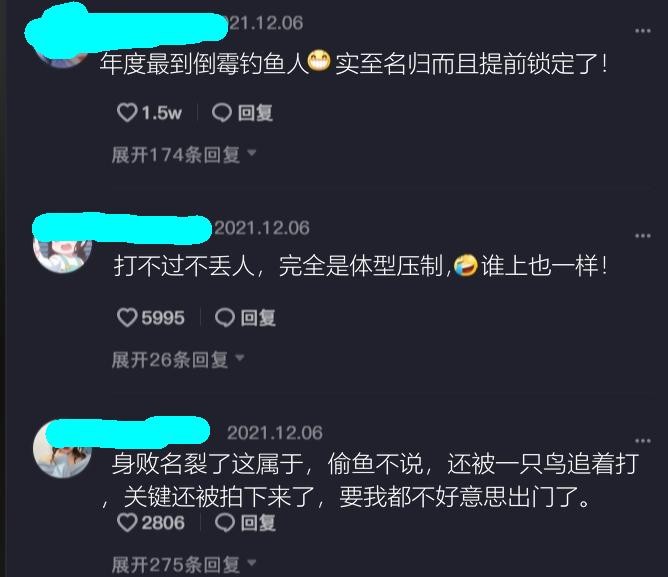 尤其在其他的钓鱼爱好者看来,这位盐城男子实在“太耻辱”——有人直言:“身败名裂了这属于,偷鱼不说,还被一只鸟追着打,关键还被拍下来了”……