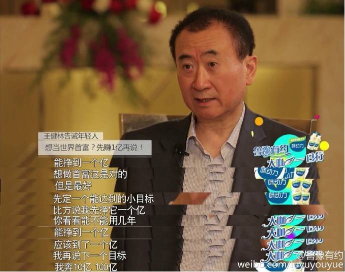 ▶王健林:“先定一个能达到的小目标,比方说先赚它一个亿”