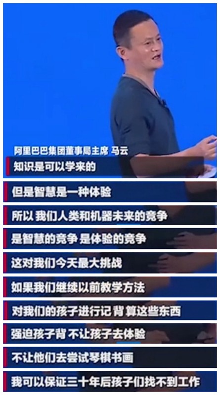 谁的成功都不是偶然的,马云更不是,他有超前的眼光和思维。如最近一次演讲马爸爸又出惊人语录,但也值得父母们思考。
