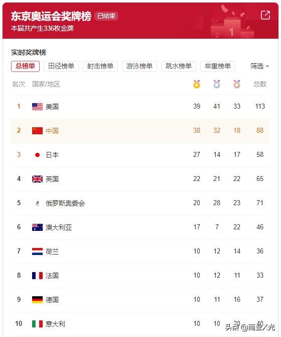 东京奥运圣火已经熄灭,中国代表队以38金、88枚奖牌位居金牌榜、奖牌榜第二。