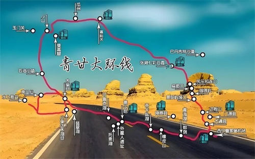 青甘大环线,连接青海和甘肃,全长2800公里,沿途包括青海湖、塔尔寺、嘉峪关、敦煌等著名景点,每一处风景都令人流连忘返。因其途经景点的壮美景色和深厚的人文底蕴,青甘大环线被视为西北地区旅游的首选之一。