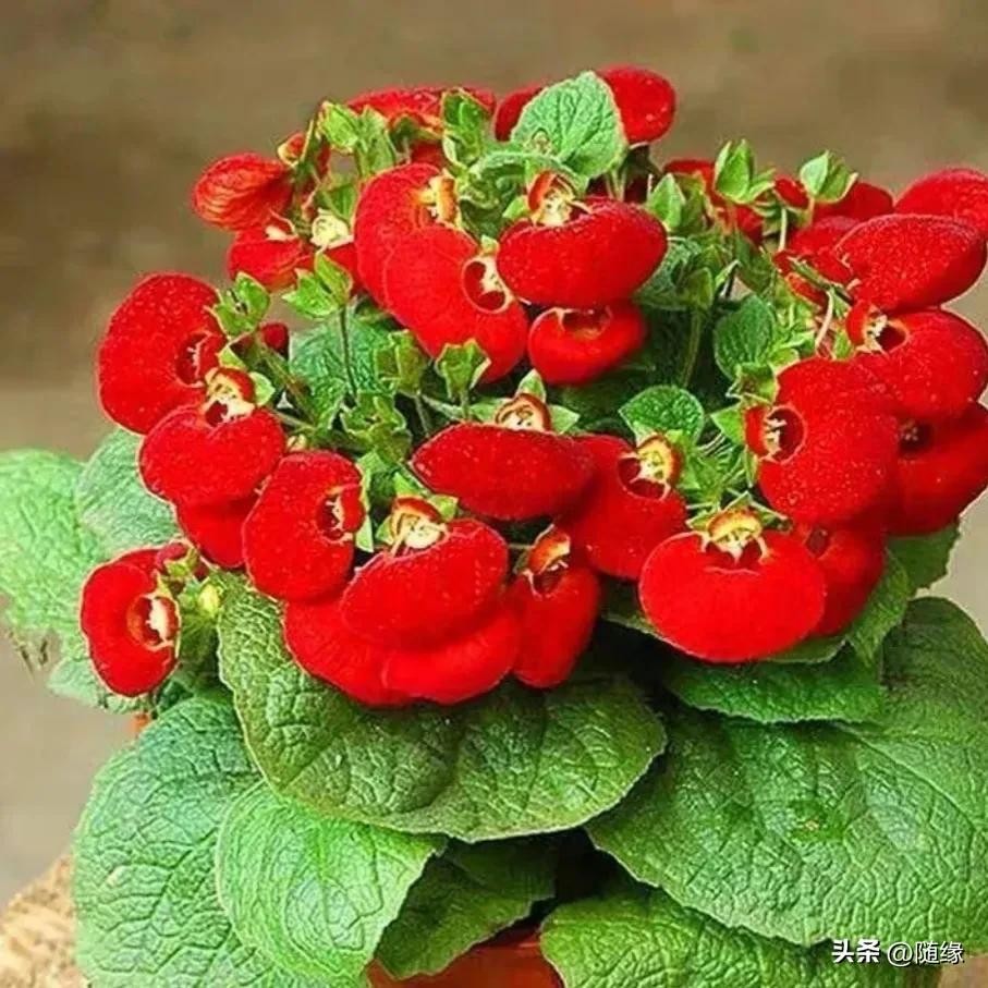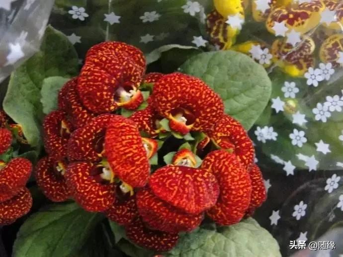 热烈奔放的红色荷包花,则像一团团燃烧的火焰,在一片素净的冬日景象里显得格外夺目。还有那些点缀着橙、粉、褐红等斑点的复色荷包花,就像是被调皮的小画家随意泼洒了颜料,充满了奇幻与灵动。