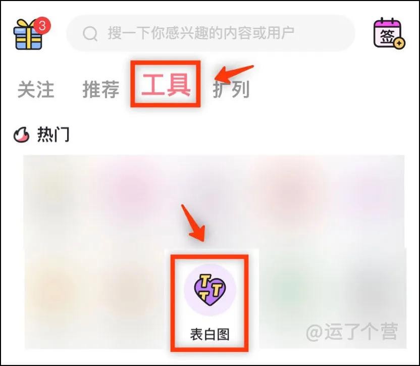 打开软件,点击顶部的“工具”,在其中找到“表白图”进入。