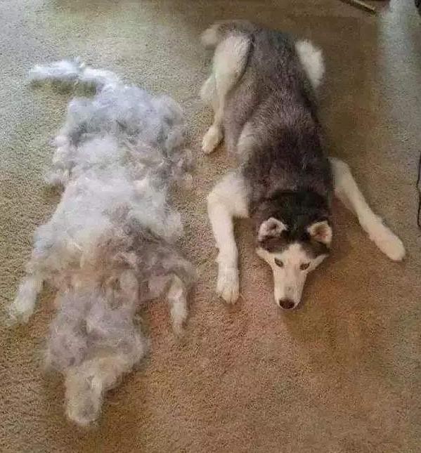 可以这么说吧,如果能把哈士奇每次掉的毛都收集起来,最后你可以用这些毛发做衣服,甚至是拼凑出一只狗狗来。
