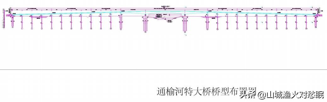 通榆河大桥:通榆河北起连云港赣榆县,南至南通通扬运河,是江苏东部贯穿南北的一条重要航道,规划通航等级为Ⅲ级。桥位处通榆河河道顺直,现状河口宽约94.5m,规划河口宽102m。