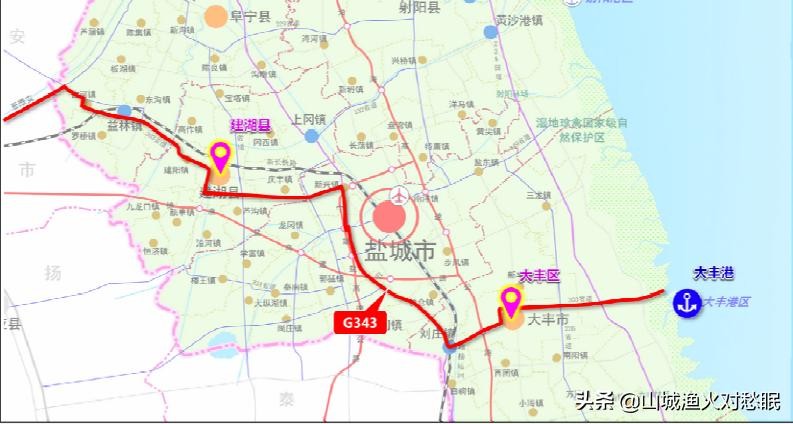 343国道盐城大丰至盐都段,东西向干线公路,预计2023年底建成