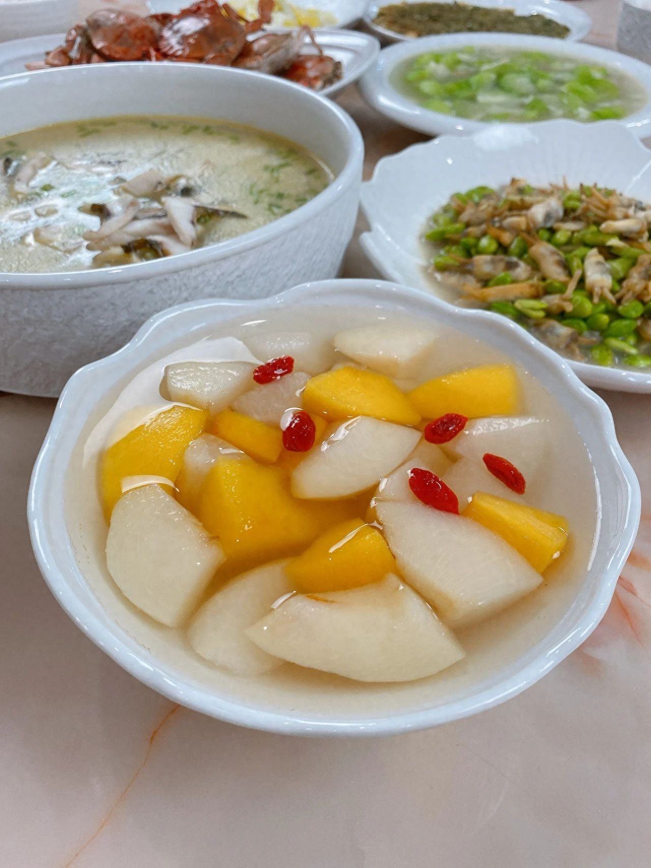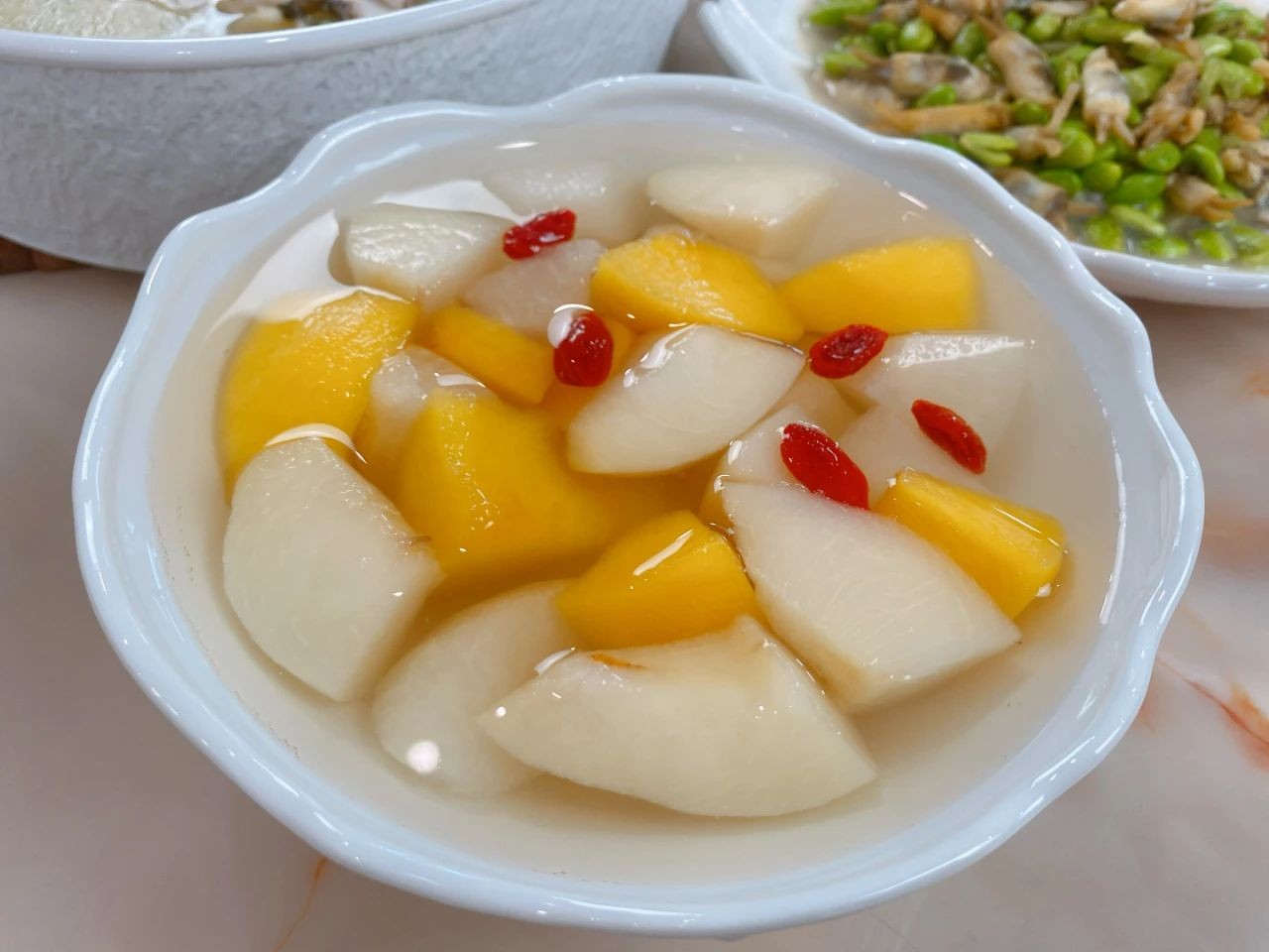 【食材和调料】:桃子、梨、冰糖。