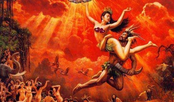 4、《独异志》卷下:从前宇宙初开时,天地之间只有女娲伏羲兄妹二人,在昆仑山下,而天下未有别的人民。相议想为夫妻,又自觉羞耻。兄即与妹上昆仑山,咒曰:“天若同意我兄妹二人为夫妻,请将天上的云都合起来一团,要不就把云散了吧。”于是天上的云立即合起来,兄妹俩就成了夫妻。中华民族都是俩人的子孙后代。