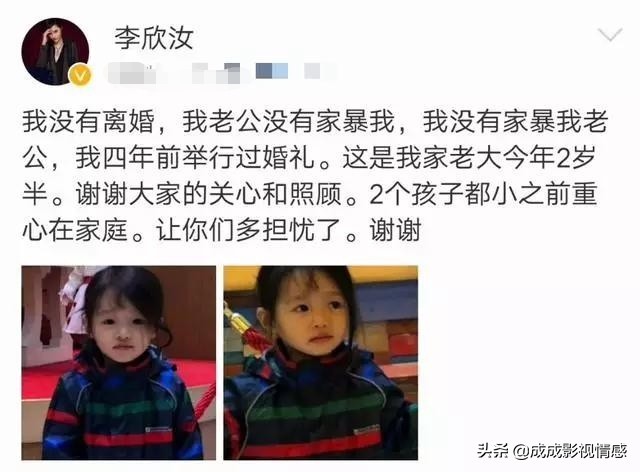 2017年,李欣汝晒出两个女儿的照片,承认已是两个女儿的妈妈,并且澄清家暴离婚等传言。
