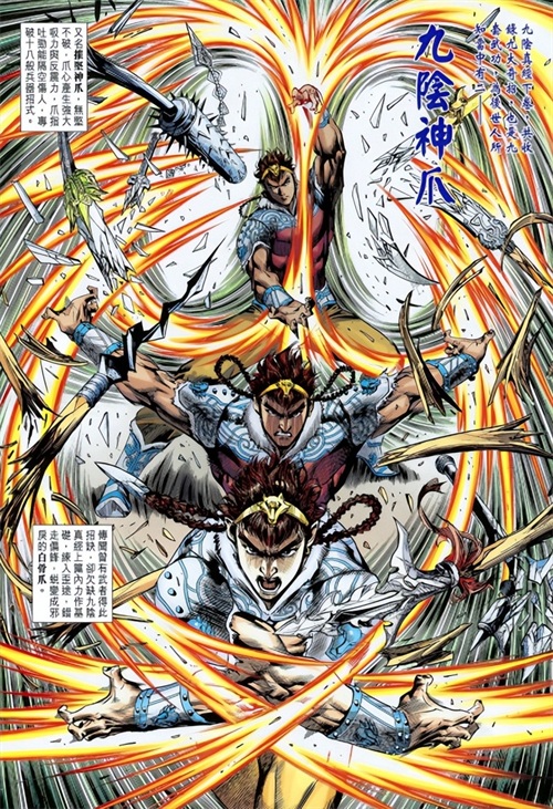 【九阴神爪】,又名【摧坚神爪】,无坚不破,爪心产生强大的吸力与反震力,爪指吐劲能隔空伤人,专破十八般兵器招式。传闻曾有武者得此招诀,却欠缺九阴真经上篇内力作基础,练入歪途,错走偏锋,蜕变成邪戾的【九阴白骨爪】。