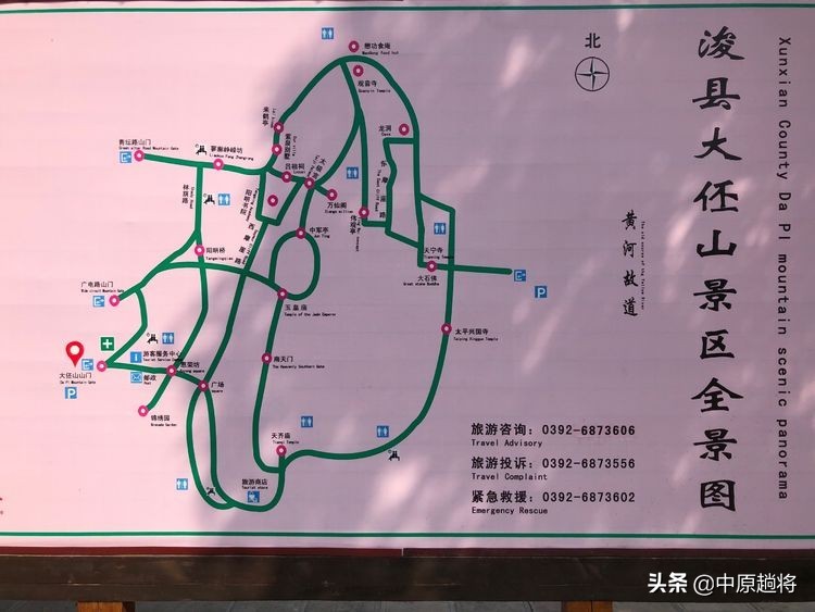 大伾山位于浚县古城的东面,总共有四个大门,我是从西边的正山门进的,门票50块。去的时候早上八点多一点,有晨练的人从大伾山往外出,听说早上七点之前没有人收门票。反正就去一次,也没有专门去考证。去大伾山其实并不是看山的,山就那么高,有看头的是散落在山上众多的人文景点,由于都比较分散,只安排了半天的行程,有些地方遗漏了可能都不知道,所以就见一个说一个,相对会比较客观。