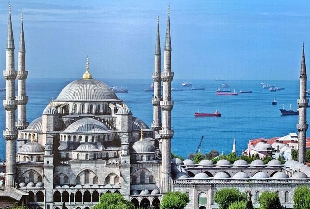 蓝色清真寺(苏丹艾哈麦德清真寺),是伊斯坦布尔的地标性建筑,修建于1609~1616年奥斯曼帝国时期。