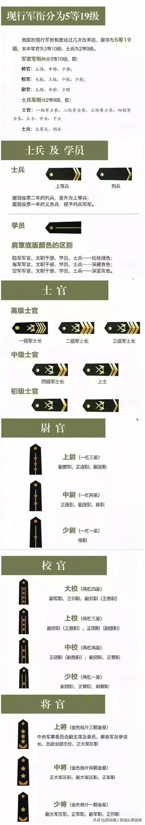 总之,解放军十九级是中华人民共和国的军事等级制度,它依次排列了十九个军衔等级,每个等级都代表了士兵们在军队中的地位、职责和荣誉。这个等级制度的存在,不仅是为了表彰士兵们的功绩和贡献,更是为了提高军队的战斗力和凝聚力。