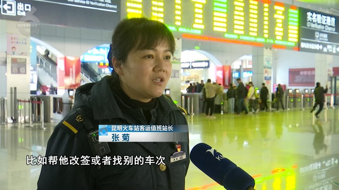 昆明火车站客运值班站长 张菊:“很多旅客还是会踩点来坐车,很着急,遇到停检就会很着急不听工作人员的劝阻。第一我们现场人员发现了,会帮他想解决办法,比如帮他改签或者找别的车次送到他的正当到站。”