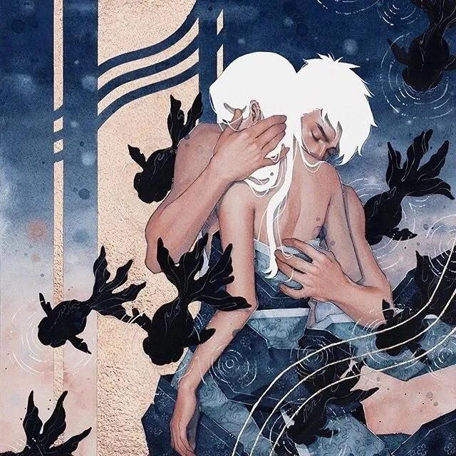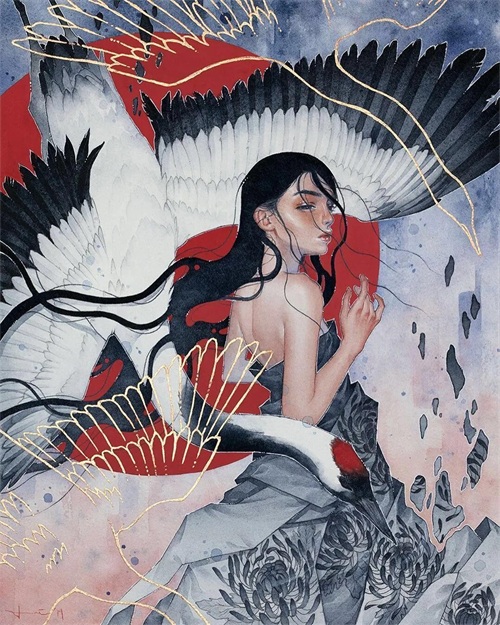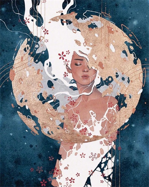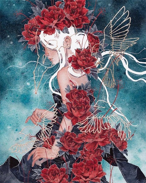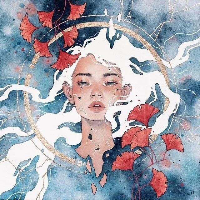 分享一组唯美水彩人物插画∣艺术家笔下的少女,色彩深沉美而动人