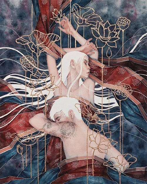 水彩人物插画∣艺术家笔下的少女,色彩深沉唯美而动人15图