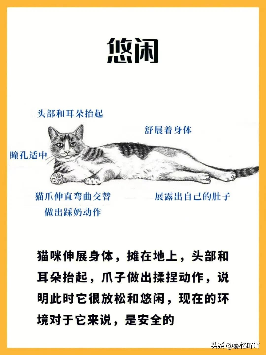猫除了会用「喵~」的声音来交流,肢体语言也是极其丰富的~猫会通过自己的肢体动作表达出自己的想法,你回忆一下,你的猫主子在你抚摸它的时候是否把背拱起来让你尽情抚摸?这个动作就表示它很享受跟你的这种互动。相反,如果它在你轻抚的时候躲闪,那就表示它现在烦着呢,你一边凉快去吧。我们应该如何揣摩猫主子的想法呢?你可以通过眼睛,耳朵,身体和尾巴的细节变化来了解