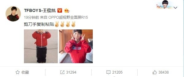 王俊凯晒剪刀手童年对比照 藏大长腿煞费苦心!