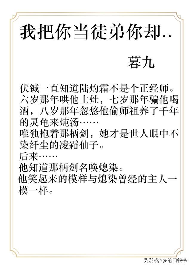 5本女师男徒文推荐!养大的徒弟怎么就黑化了呢