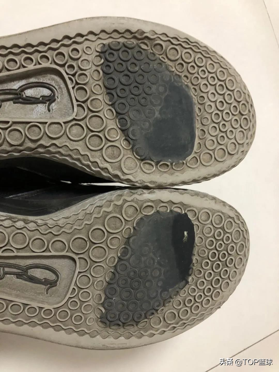 2、不耐磨。场地并不是特别粗糙的水泥地。打球一个多月,且不是每次都穿,前掌就以已经磨损很多,基本看不清纹路了。截止到现在,前掌已经磨漏出一点气垫了。