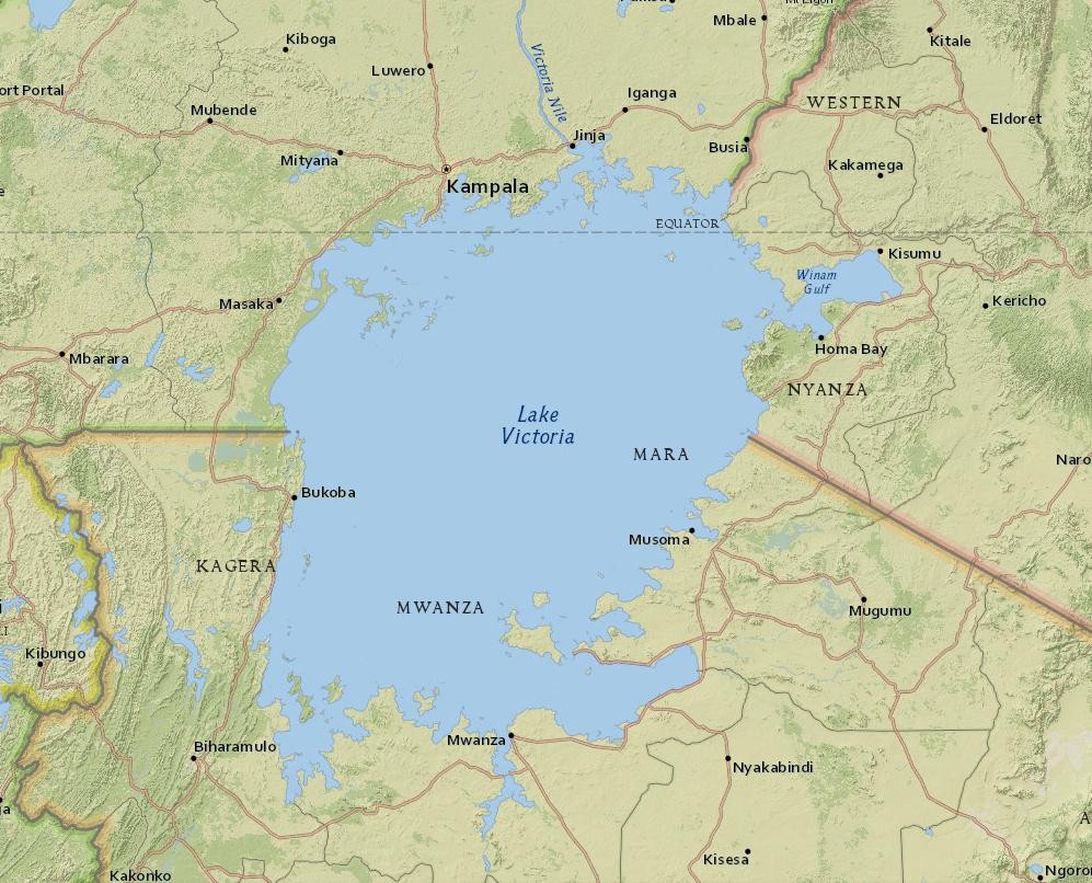 维多利亚湖位于东非高原处的坦桑尼亚和乌干达两国交界处,其中大部分属于坦桑尼亚,其面积为69400平方千米,是整个非洲境内面积最大的淡水湖。维多利亚湖的平均深度为40米,已知最大深度为82米,其总蓄水量约为2760立方千米,整个湖泊的湖岸线长度达到了3220千米。