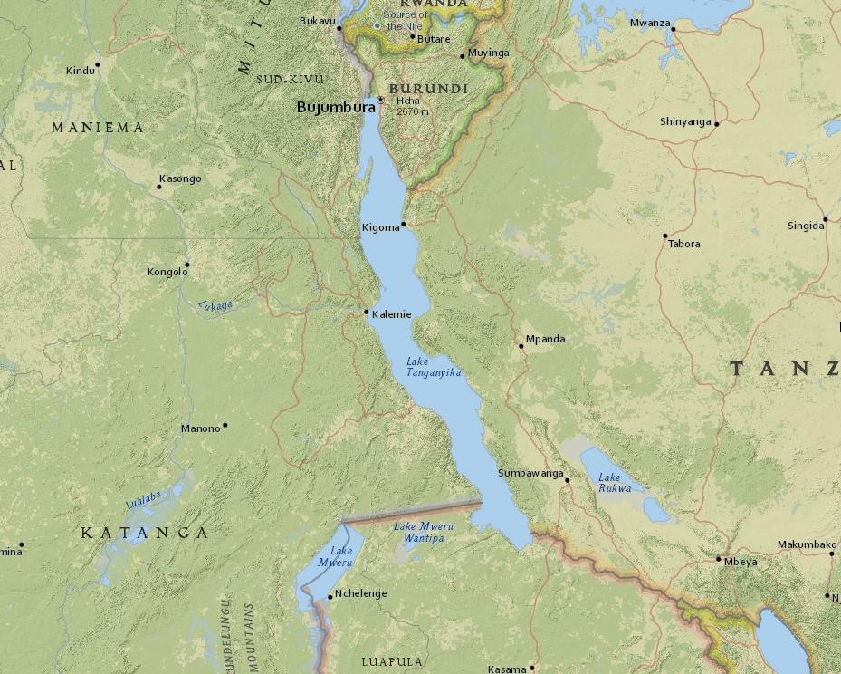 坦噶尼喀湖位于东非大裂谷的西部裂谷区,整个湖泊虽然东西长度只有50千米左右,但其南北长度达到了679千米,因此其面积也达到了32900平方千米,在整个非洲地区仅次于维多利亚湖。坦葛尼喀湖的平均深度达到了570千米,最大深度更是达到了1470千米,在全世界范围内仅次于贝加尔湖。正是因为其湖泊深度较深,因此其总蓄水量达到了18900立方千米,仅次于贝加尔湖,排名全球所有淡水湖泊中的第二名。
