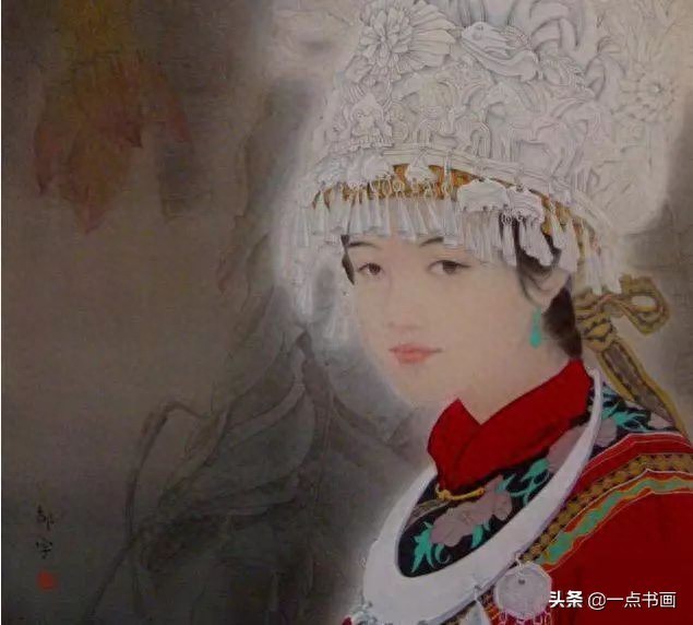 2、用墨分染,先从大体入手,淡墨染背景,宁可谈些多染几遍都不要一下用重墨染死,到头饰时就用水晕开。