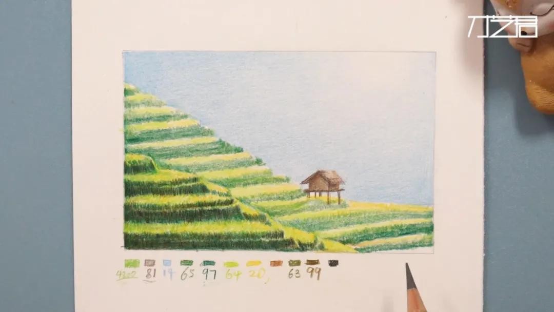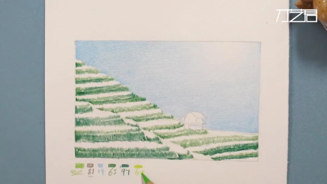简单几步教你画唯美彩铅风景画 梯田风光 有同款视频课程