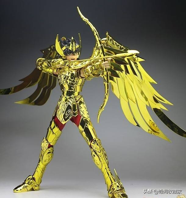 13年,BANDAI召开了“圣斗士圣衣神话 十周年”发布会,发布了一款射手座黄金圣衣,作为十周年的纪念商品,这件纯黄金打造的手办,高度大约在15公分,重达2000g,分量十足,价格在370万人民币左右
