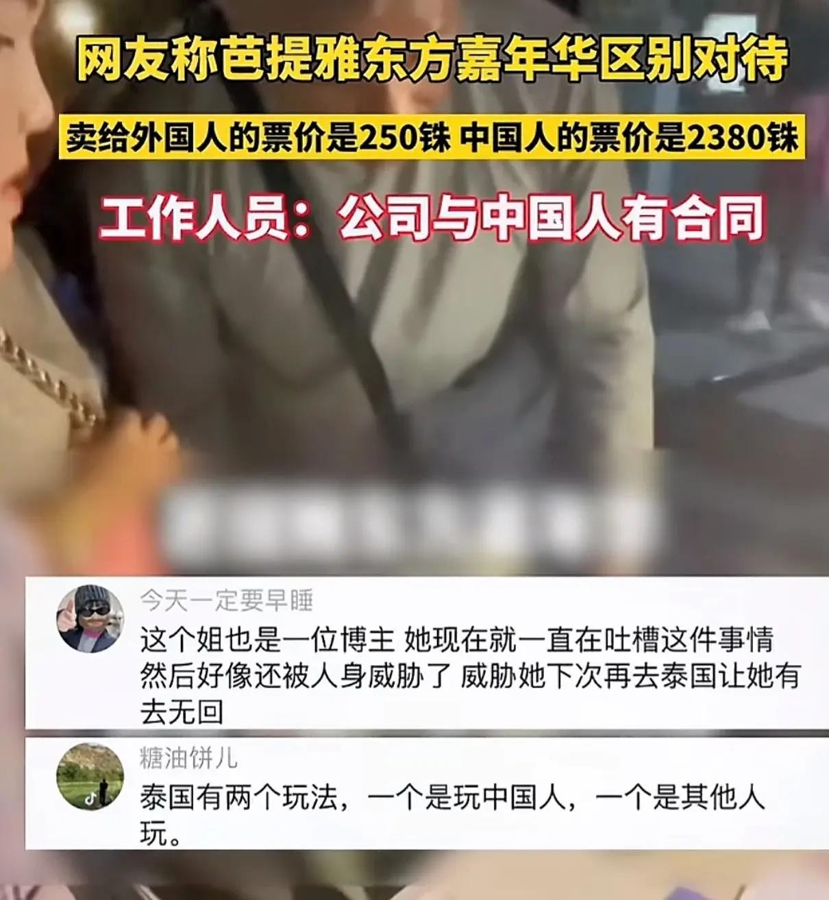 又是区别对待?泰国芭提雅东方嘉年华中国人门票贵十倍,网友愤怒