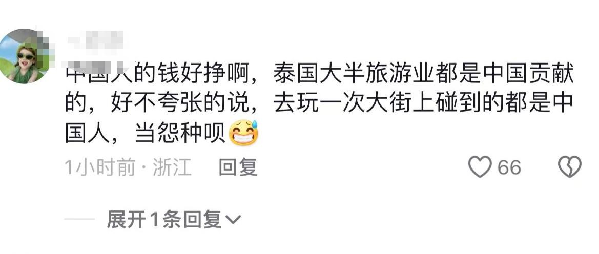 网友表示中国人的钱好挣啊!泰国大半的旅游业都是中国人贡献的!在泰国街上玩能碰到好多国人!