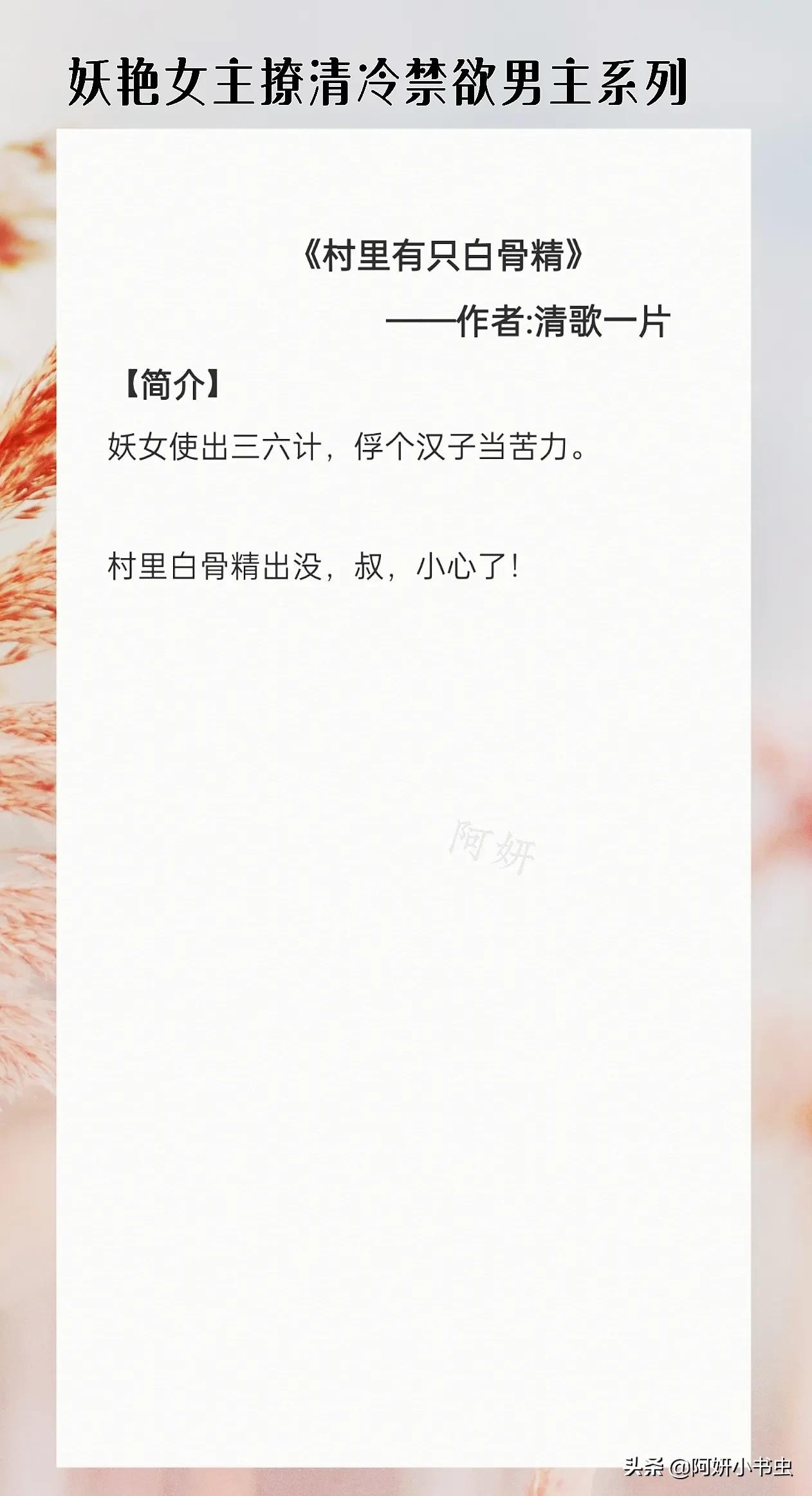 嗨大家好:我是阿妍,你们的小可爱带着热乎乎的小说文案来了。