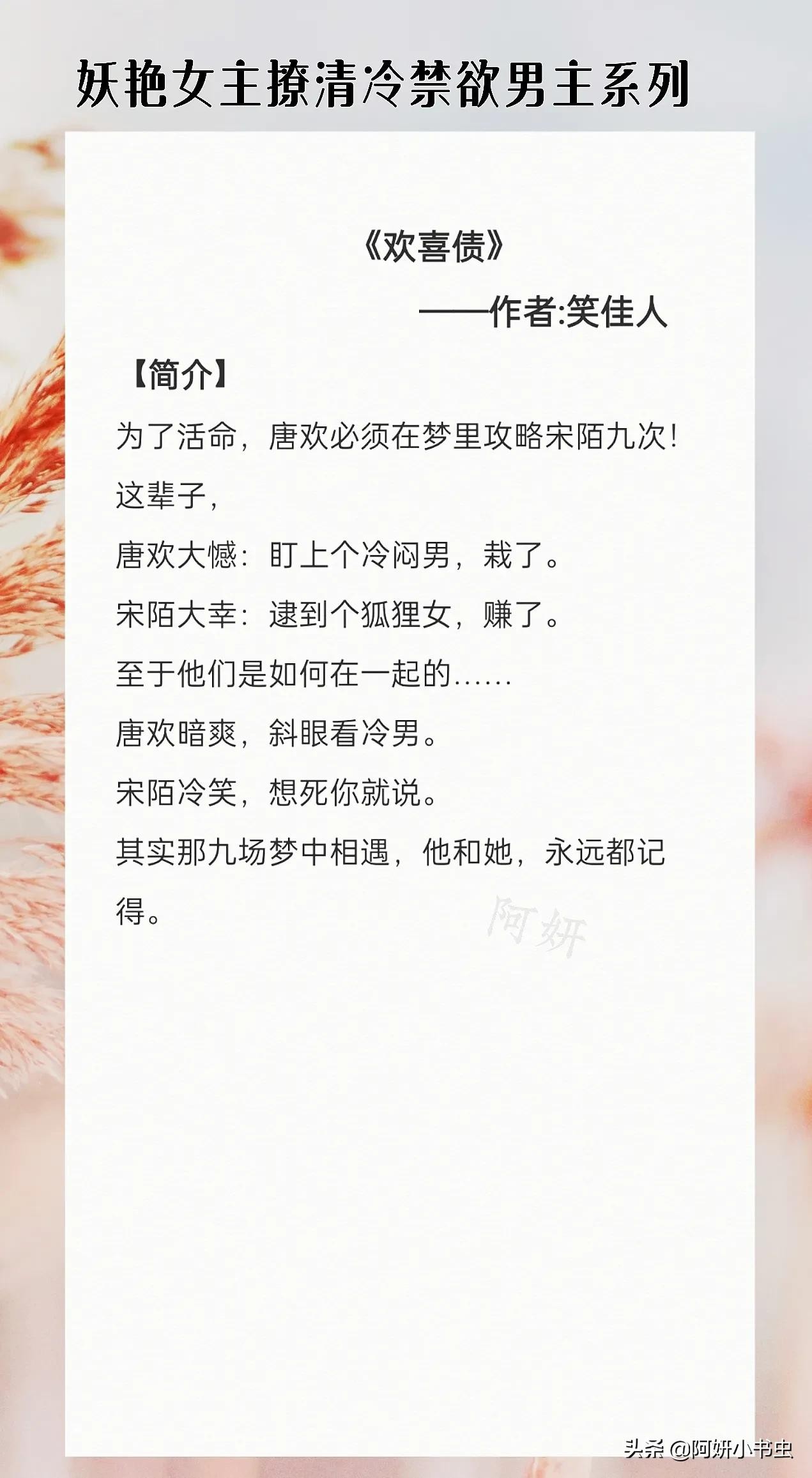 3本妖艳女主撩清冷禁欲男主文:《欢喜债》撩人小妖精x高冷禁欲男