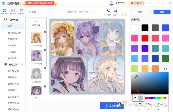 一款专业的的图片编辑软件,功能很全,不仅有拼图,图片格式转换,压缩、去水印、消除笔、抠图换背景、模糊图片修复等等,一款工具多种用途,拼图功能更有多种图片模板可选,最多一次性可上传30张图片操作,间距、圆角、边框都可自己调整,背景可以用纯色也可以自己上传图片,没有合适的色也可以吸色图片上的颜色来用~