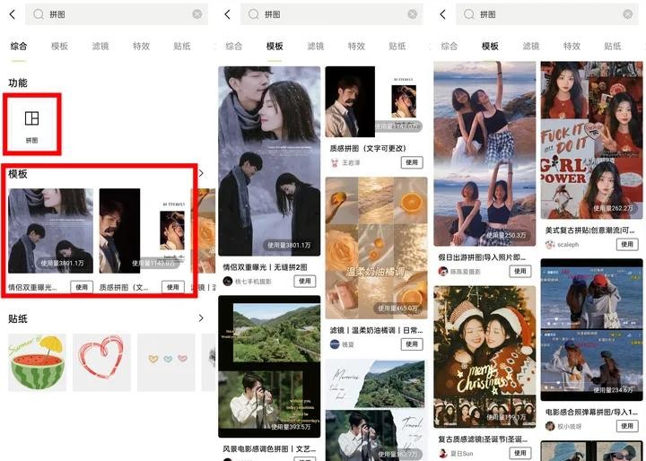 不仅可以使用拼图功能进行拼图,还有很多模板可以使用