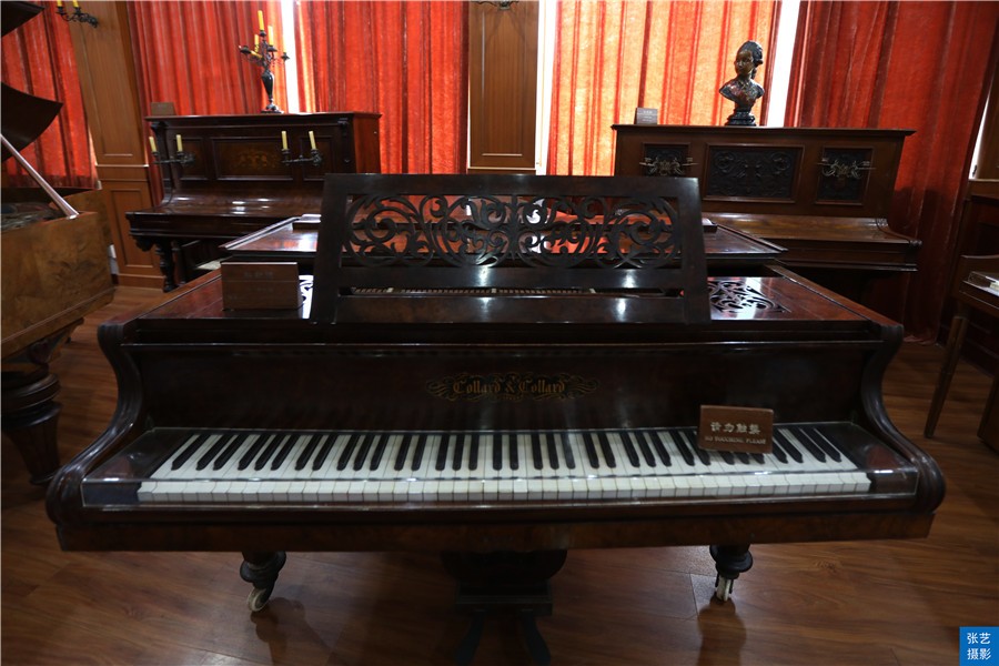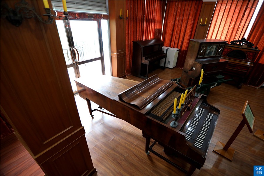 钢琴博物馆里面陈列了胡友义先生收藏的70多架古钢琴。这些古钢琴品种和造型都各异,大多保存得很好,都有着雕刻的花纹,木质的纹理,满满的古典气息。