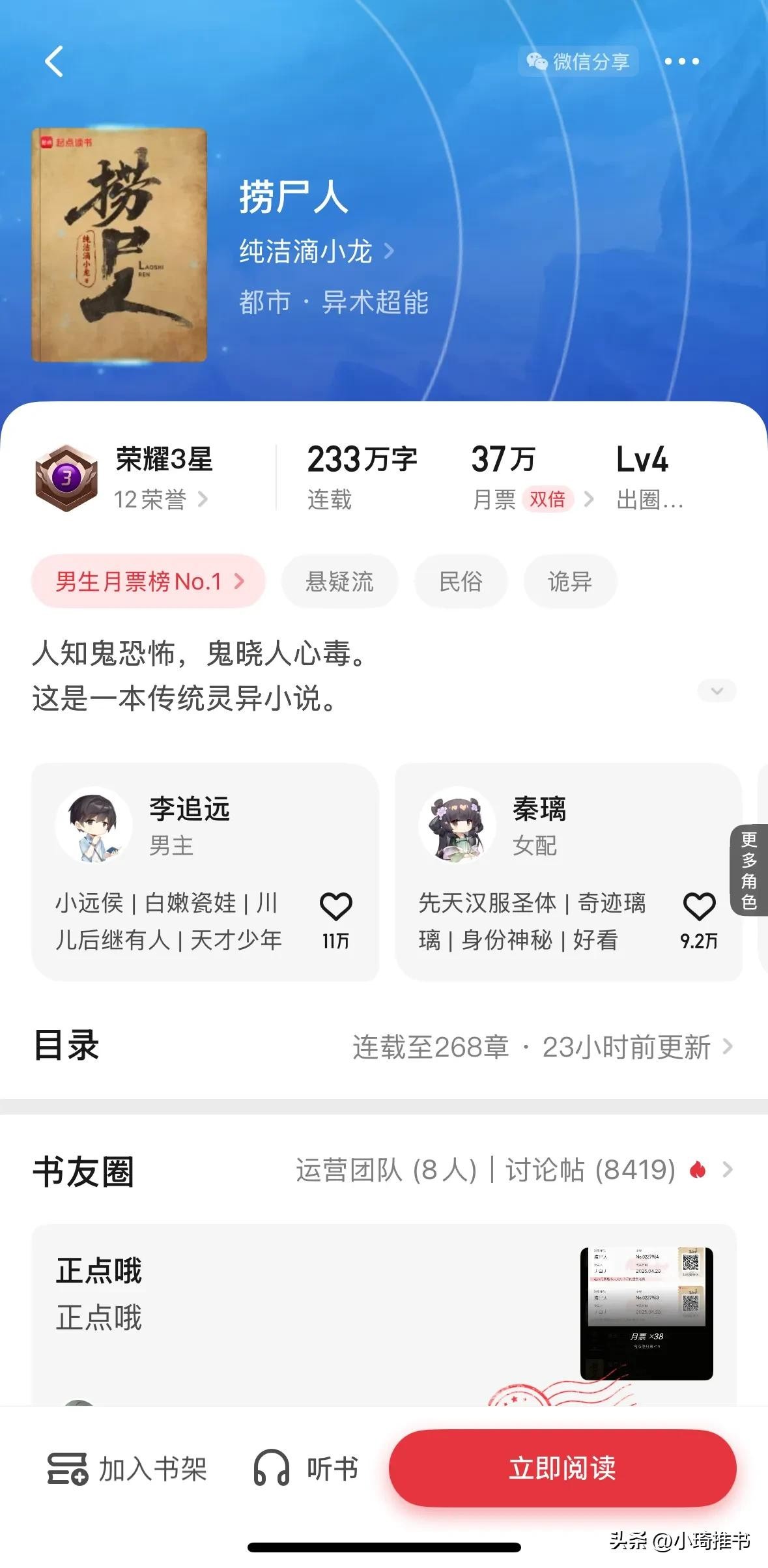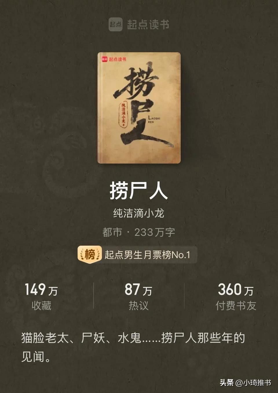 《捞尸人》是起点中文网人气作家纯洁滴小龙于2024年9月推出的悬疑灵异小说。