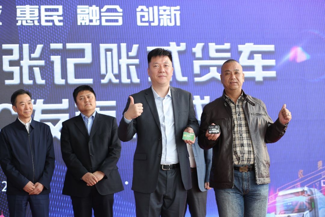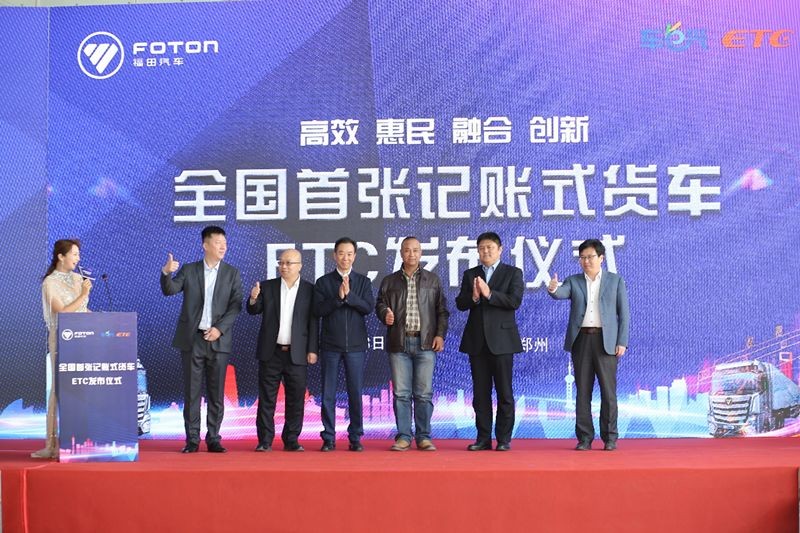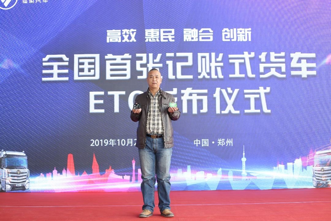 发布会现场,来自河南郑州的卡车车主马中杰,为自己的卡车领到了全国第一张货车车载电子标签和ETC记账卡套装,完成了车载电子标签激活,标志着全国首张带电子标签的货车ETC记账卡正式诞生。