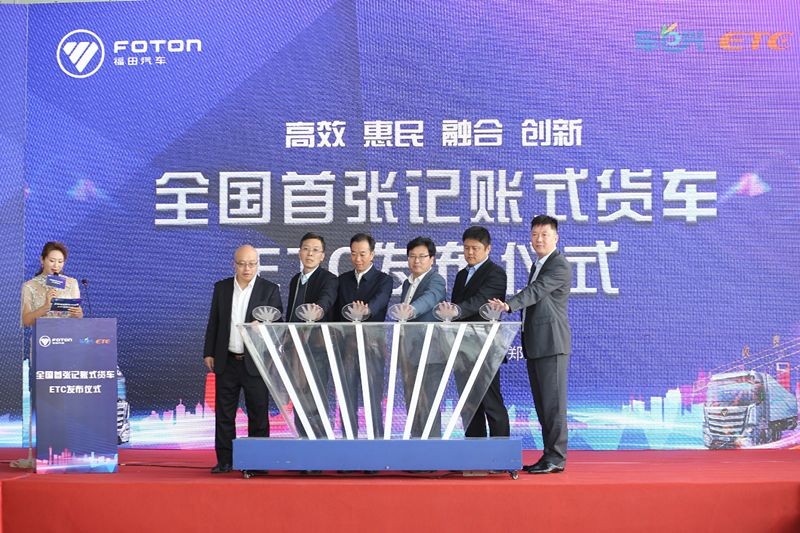 (河南视博电子、河南省高速公路联网公司、河南省交通运输厅、福田汽车、中国银行河南省分行等单位领导共同开启货车ETC首发启动系统)