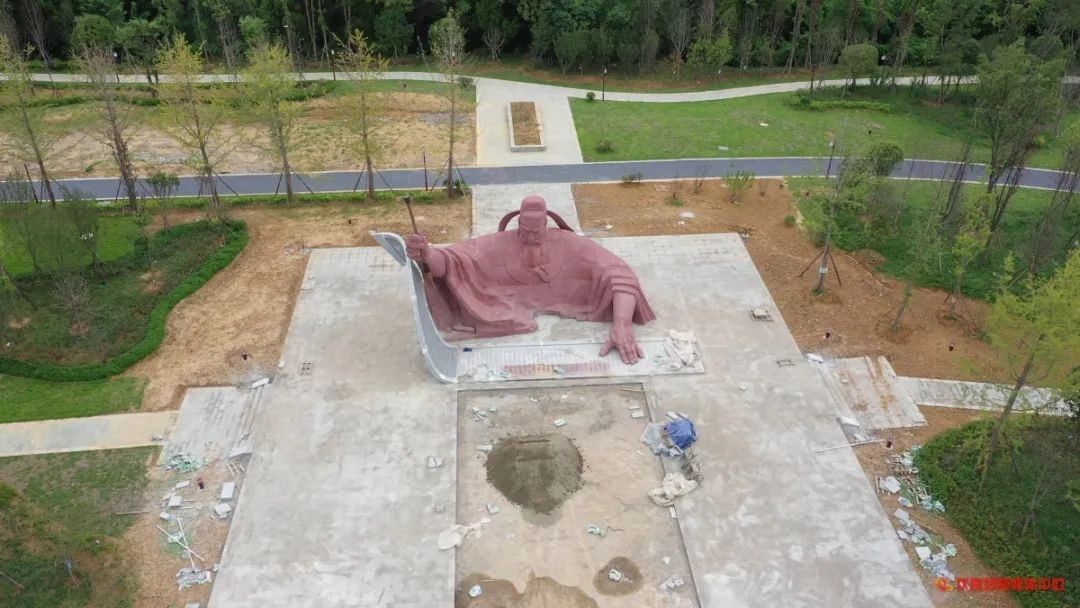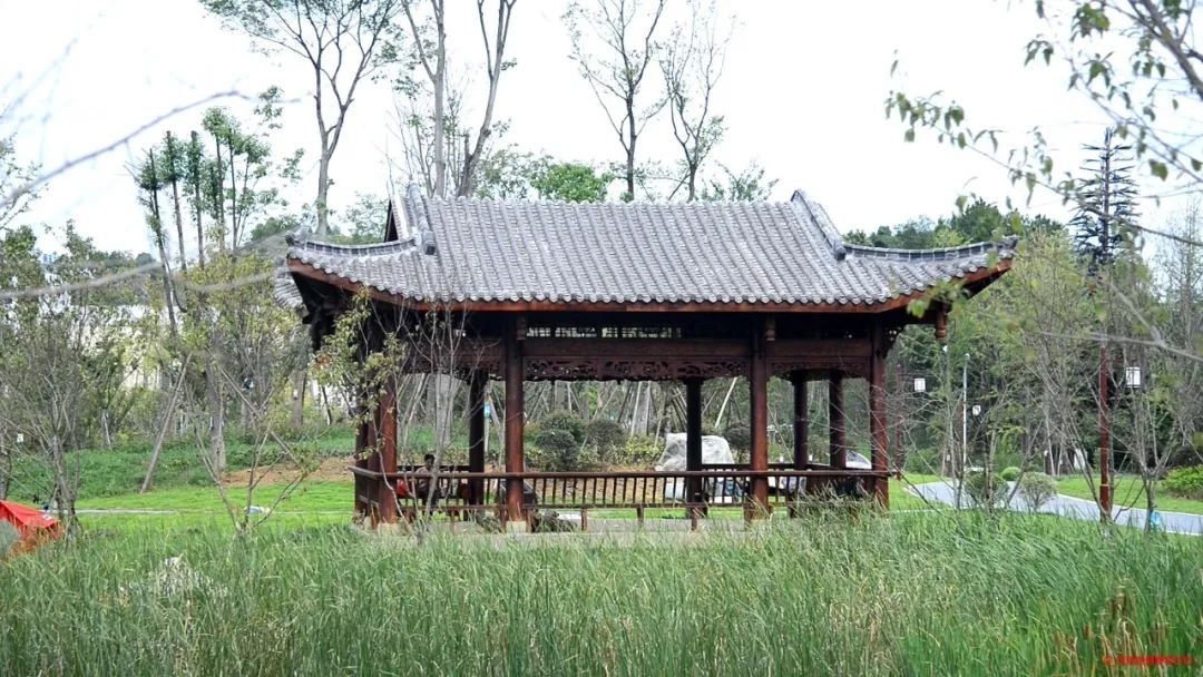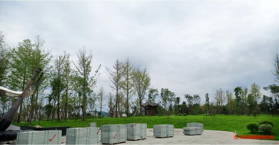 目前,儿童乐园的塑胶地面已基本完工,颜真卿广场的硬质铺装、以及木廊架的整修还在进行中。